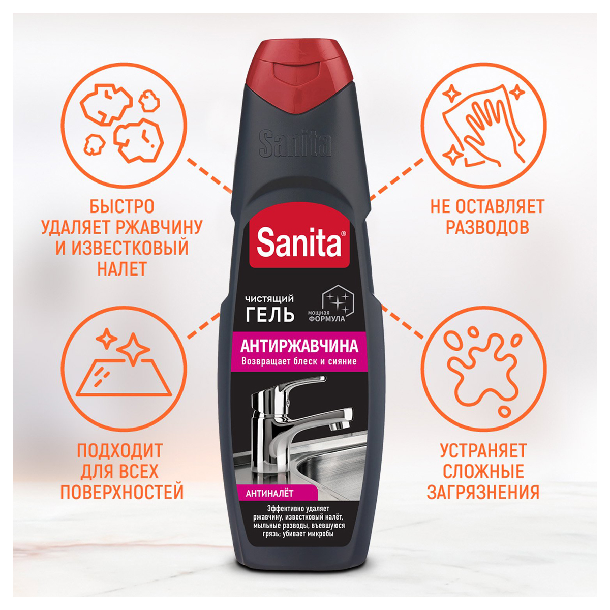 Средство чистящее Sanita "Антиржавчина", гель, 500мл [8609]