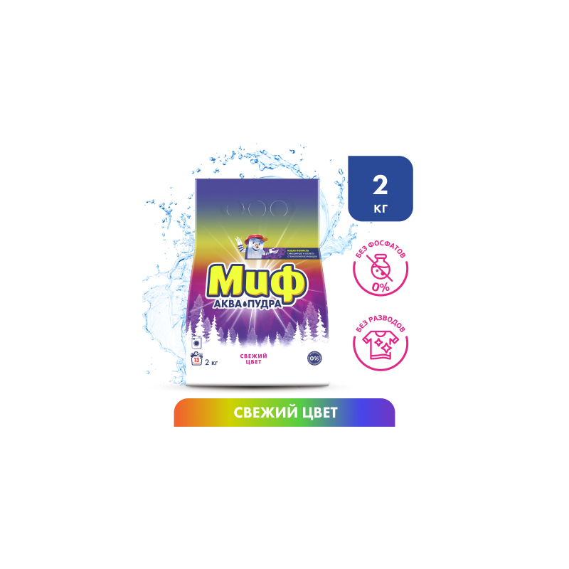Порошок для машинной стирки Миф Аквапудра Свежий Цвет, 2кг [5413149354128]
