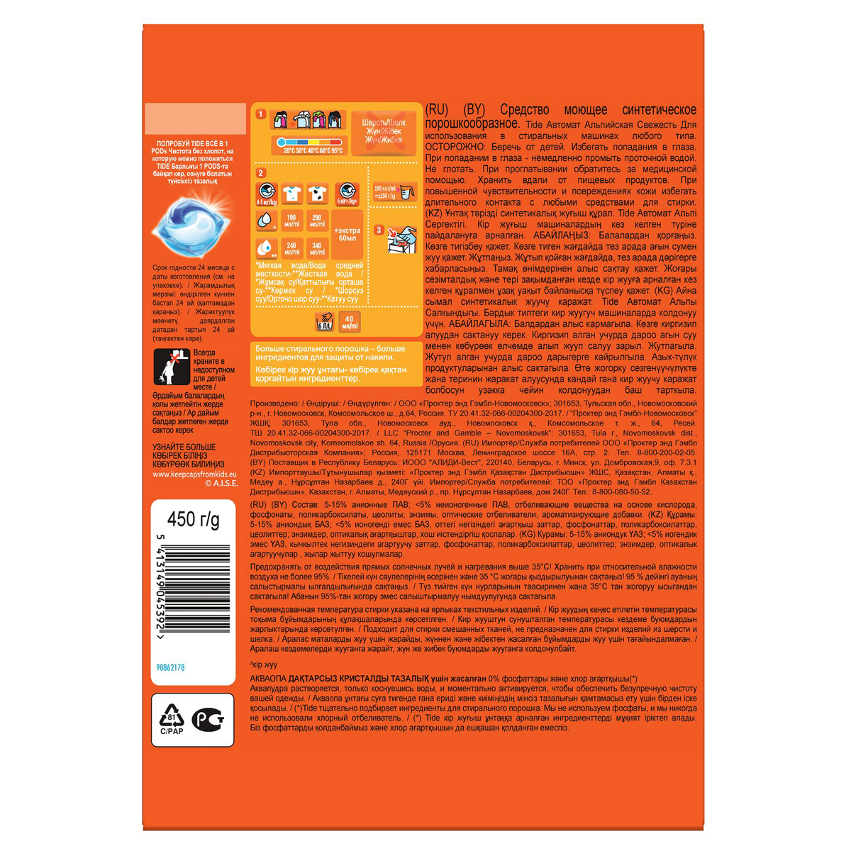Порошок для машинной стирки Tide "Альпийская свежесть", 450г [5413149045392]