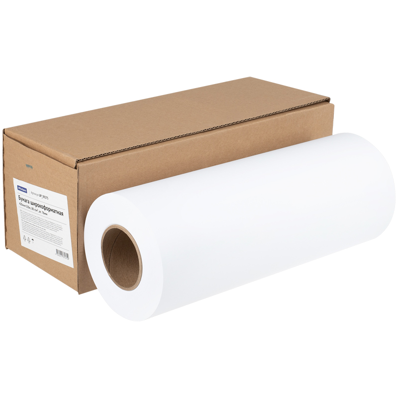 Бумага широкоформатная OfficeSpace без покрытия. Предназначена для печати чертежей, линейной графики, схем и других видов технической документации. Идеальна для печати черно-белой, а также отдельных видов цветной графики без передачи полутонов. Используется на широкоформатных ксерографических инженерных системах HP, Canon, Epson, Graphteс, KIP, Kyocera, Leonardo, Mimaki, Philips, RICOH, Samsung и др.Размер бумажного полотна составляет 420 мм, что соответствует формату А2. Длина рулона - 150 м. Внутренний диаметр втулки - 76 мм.