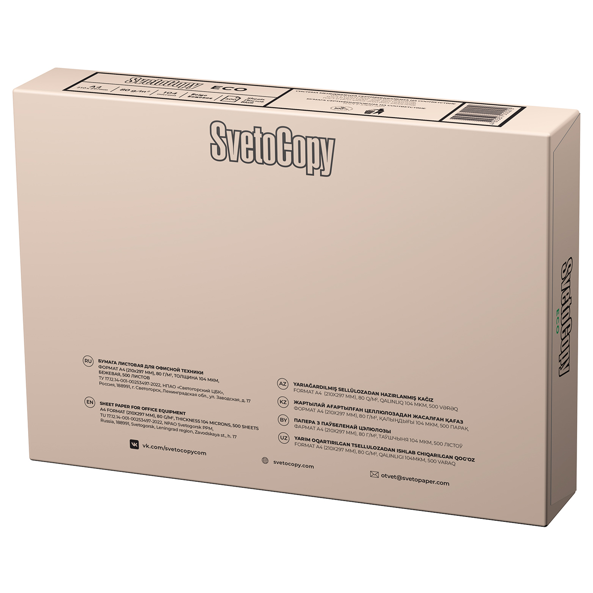Как и все продукты линейки SvetoCopy, офисная бумага SvetoCopy ECO предназначена для работы в принтерах и копировальных аппаратах и обладает всеми необходимыми характеристиками для печати высокого качества.