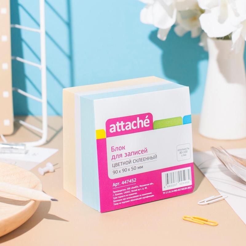 Блок для записей Attache 90x90x50 мм разноцветный проклеенный (плотность 80 г/кв.м)