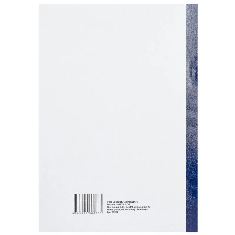 Бухгалтерская книга учета формата А4. Обложка изготовлена из картона серого цвета. Внутренний блок — офсетная бумага, 96 листов в клетку. Тип крепления — скрепки + бумвинильный корешок.Характеристики