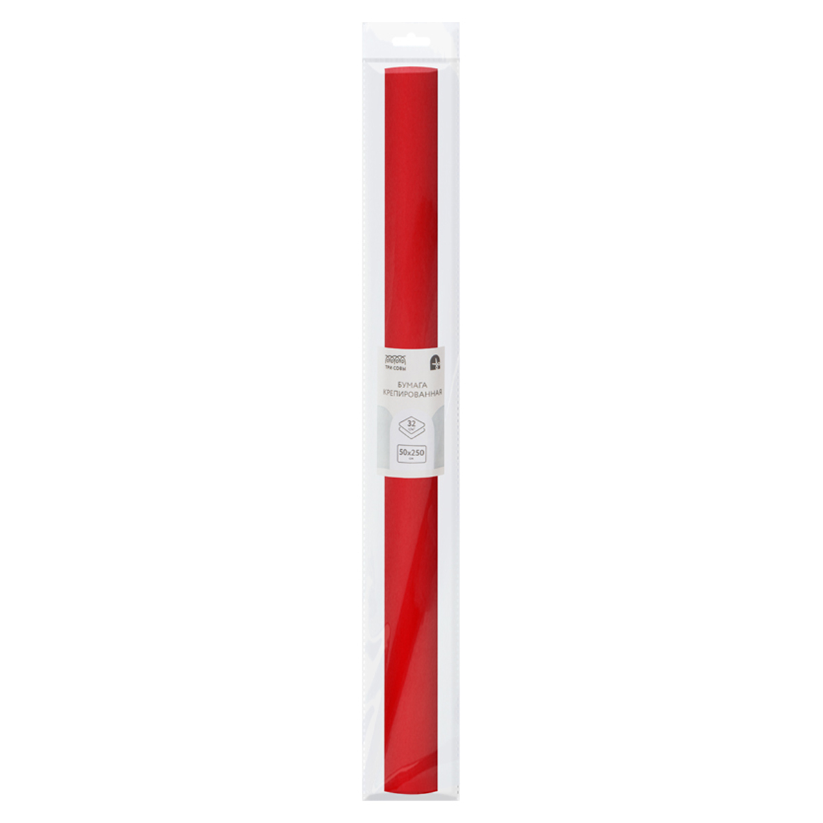 Бумага крепированная ТРИ СОВЫ, 50*250см, 32г/м2, красная, в рулоне, пакет с европодвесом [CR_43941]