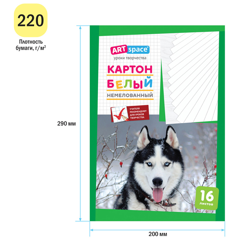 Картон часто используют как основу для поделок. Размер: 200*290 мм. Плотность: 220 г/м2. В наборе белого картона ArtSpace используется немелованная бумага, которая имеет приятную матовую поверхность. Она рекомендована для использования в детских садах и начальных классах школ.• Формат: А4;