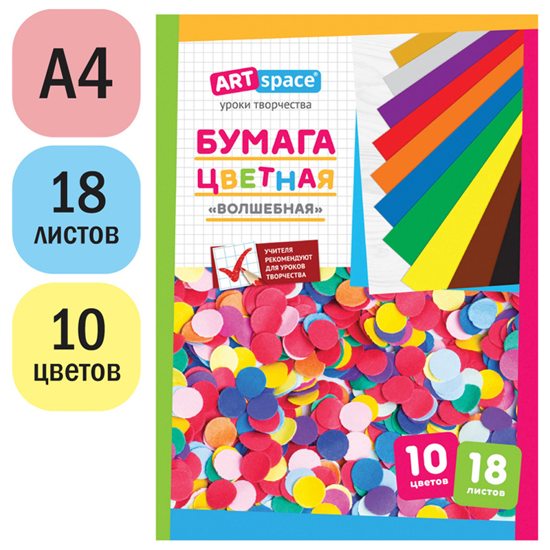 Цветная бумага газетная А4, ArtSpace, 18л., 10цв., золото, серебро, на скобе, "Волшебная" [Нб18-10_1089]