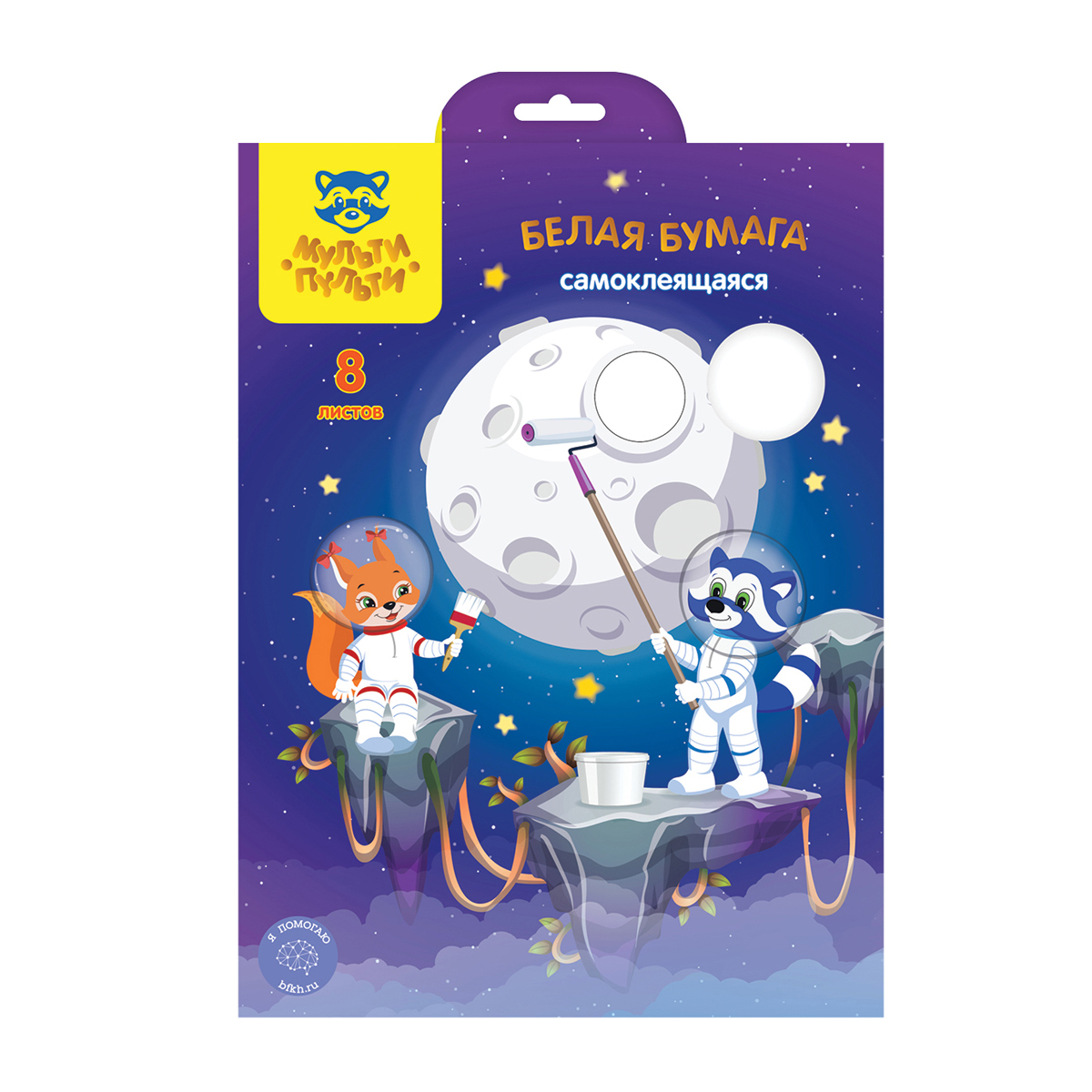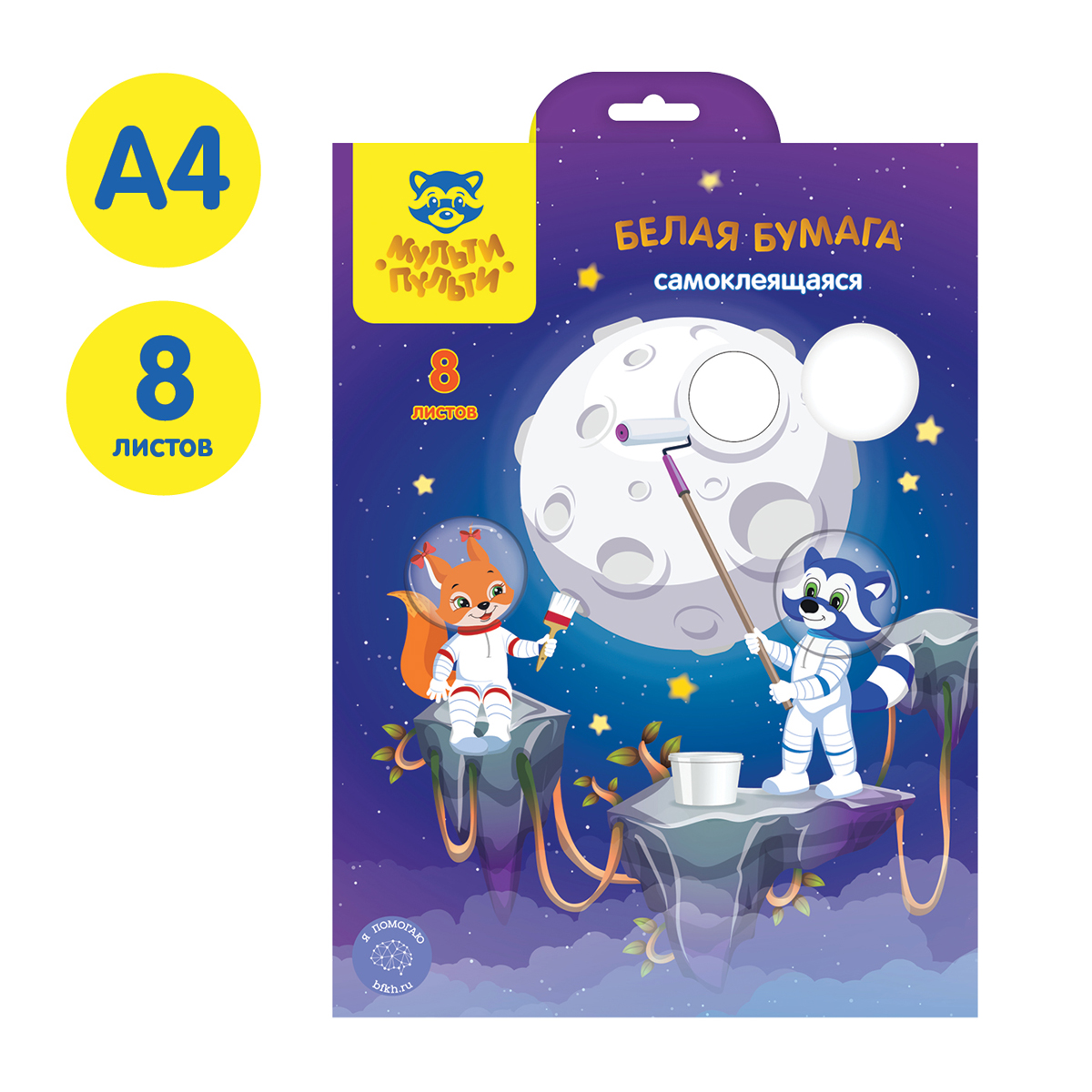 Белая бумага самоклеящаяся А4, Мульти-Пульти, 8л., в папке, "Енот в космосе" [Ббс8_44858]