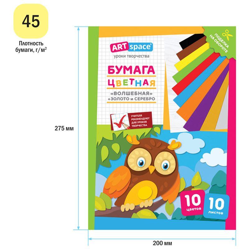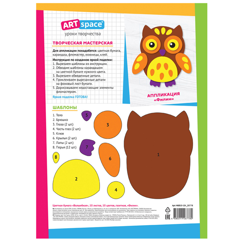 Цветная бумага газетная, А4, ArtSpace, 10л., 10цв., "Волшебная. Филин" [НбВ10-10г_28778]