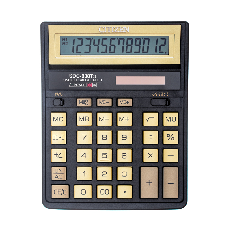 Калькулятор настольный Citizen SDC-888TIIGE, 12 разрядов, двойное питание, 158*203*31мм, черный/золо [SDC-888TIIGE]