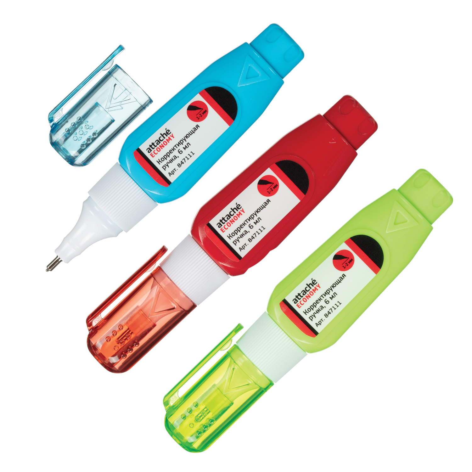 Корректирующий карандаш Attache Economy предназначен для точечных исправлений на любых типах бумаги. Данный вид корректировки особенно удобен, если Вам нужно исправить небольшой объем текста или даже самую маленькую помарку. Идеально подходит для студентов и старших школьников. Объем флакона - 6 мл. Металлический наконечник позволяет наносить тонкие линии. Содержит быстросохнущую основу, обладает высокой кроющей способностью.1. Перед применением тщательно встряхните средство в течение не менее 10 секунд, затем снимите колпачок.
