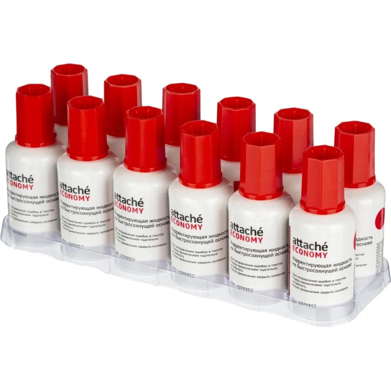 Корректирующая жидкость Attache Economy применяется для корректировки всех типов документов, включая бумагу для факсов. Ложится ровным гладким слоем, создает непрозрачное покрытие. Имеет быстросохнущую основу. Вид кисточки — ворс. Объем флакона с корректирующей жидкостью составляет 22 г.1. Перед применением тщательно встряхните средство, затем снимите колпачок. Опустите кисть (аппликатор) во флакон и затем аккуратно выньте ее. При необходимости сотрите излишки корректирующей жидкости о внутреннюю сторону горлышка флакона, а не его край. Это позволит избежать присыхания жидкости.