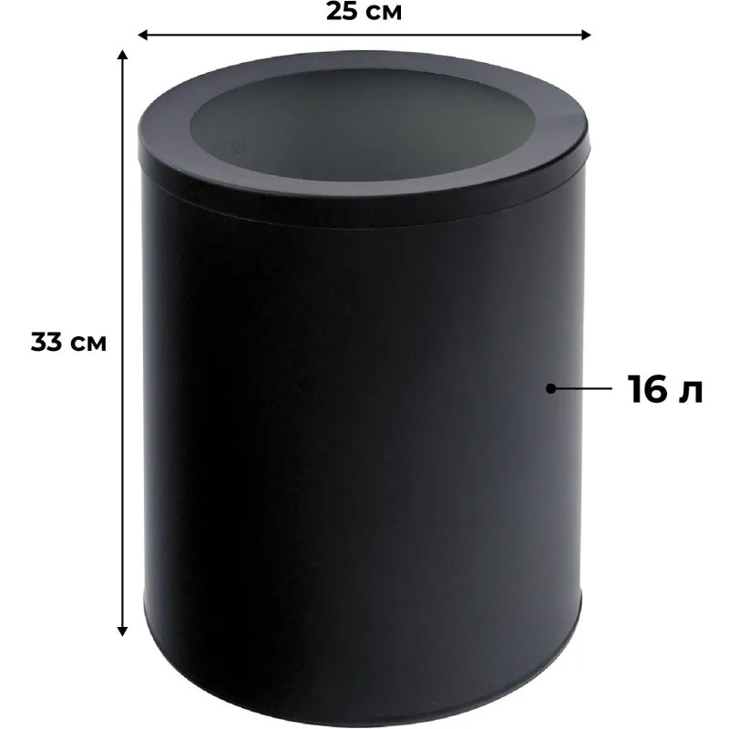 Корзина для мусора и бумаг Титан 16 л окрашенная сталь черная (33×25×25 см).Корзина для мусора «Титан» — металлическая стационарная корзина, низкая. Может использоваться как внутри помещений, так и за их пределами. Верхний ободок снимается. Компактные размеры позволяют использовать ведро без ущерба к полезному объему помещения. Цвет: черный. Объем: 16 л. Диаметр: 25 см. Высота: 33 см.