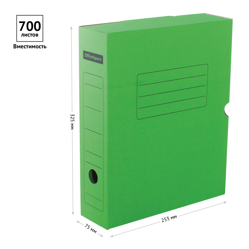 Короб архивный с клапаном OfficeSpace, микрогофрокартон, 75мм, зеленый, до 700л. [225414]