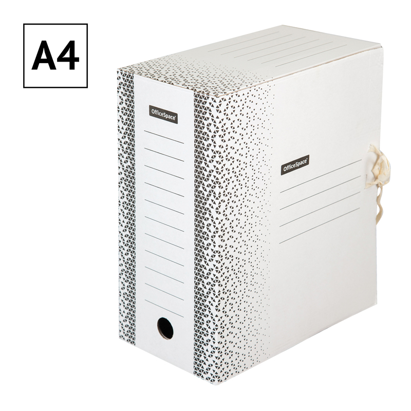 Папка архивная на завязках OfficeSpace серии Standard формата А4 идеально подойдёт для хранения большого объёма документации. Товар изготовлен из микрогофрокартона белого цвета. Наличие 2-х завязок обеспечивает дополнительную прочность. Она обеспечивает максимальный доступ к документам при раскрытии. Прочная конструкция и стандартизованный размер позволяют хранить документы вертикально и горизонтально на стеллажах или в архивных коробах. На лицевой и боковых гранях имеются поля для маркировки. Размер папки: 320*260*150 мм, ширина корешка: 150 мм. Вместительность: 1400 л.• Формат: А4;