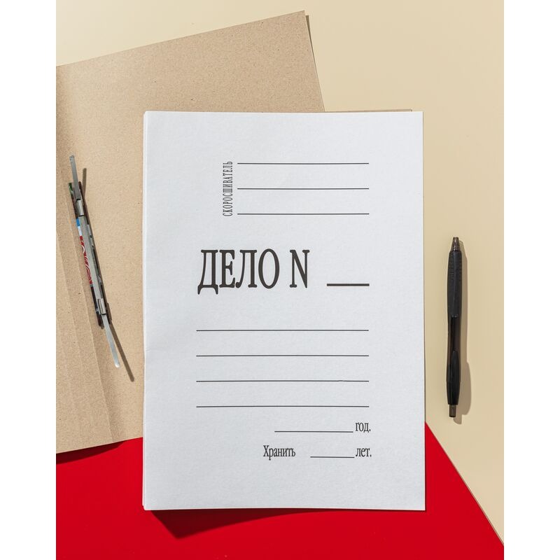 Папка-скоросшиватель Дело № формата А4 изготовлена из белого немелованного картона (плотность 260 г/кв.м). Оснащена металлическим механизмом сшивания. Длина усиков составляет 45-50 мм. Ширина корешка данного скоросшивателя составляет от 20 до 25 мм. Вместимость до 200 листов стандартной плотности. Папка-скоросшиватель поставляется по 20 штук в упаковке. Законодательные и технические документыНаличие