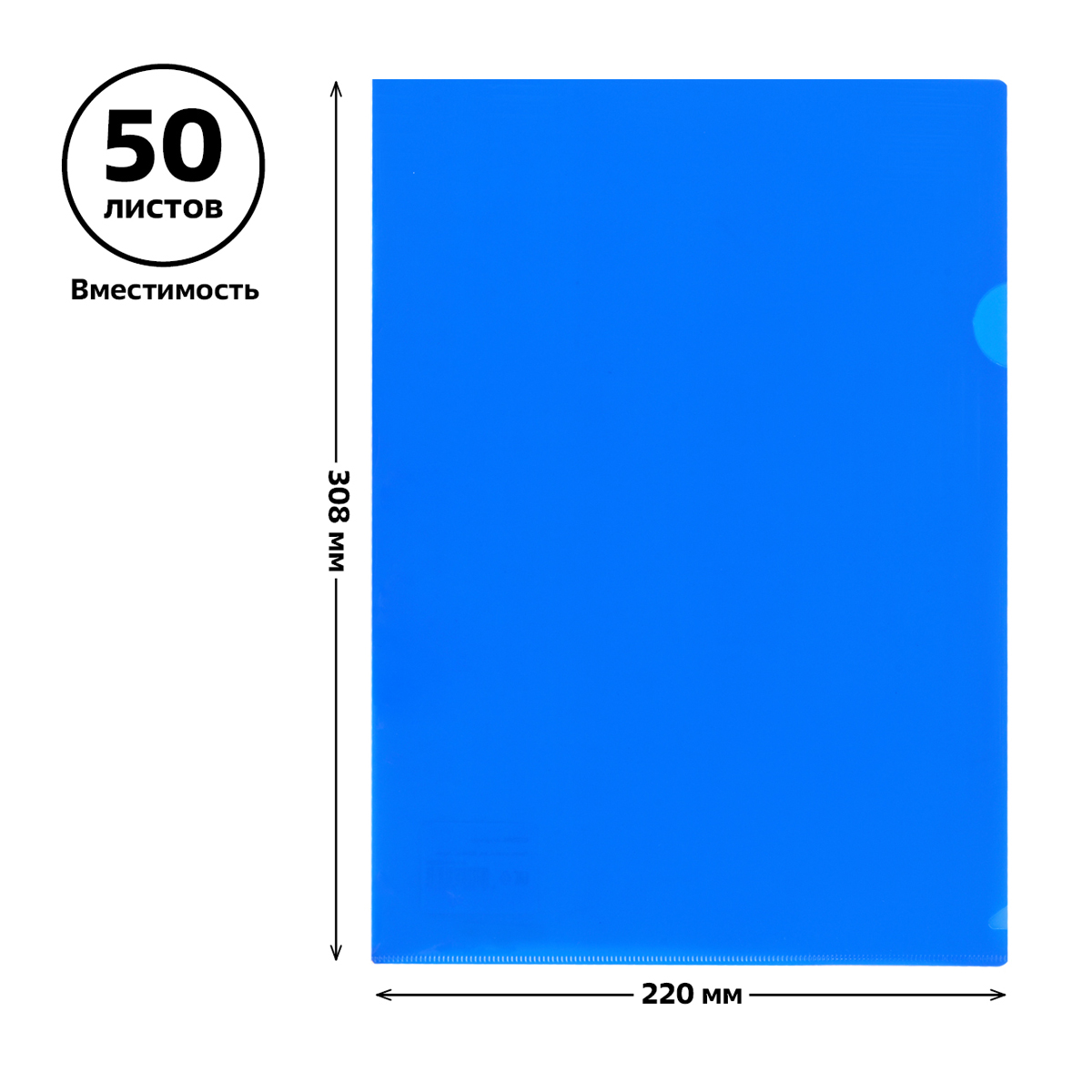 Папка-уголок «СТАММ» формата А4 изготовлена из качественного полипропилена толщиной 150мкм. Предназначена для хранения и транспортировки документов. Изделие защищает бумаги от повреждений и загрязнений. Имеется боковой вырез для удобства использования. Размер папки – 220х308 мм. Вмещает до 50 листов. Цвет папки – синий.• Вместимость: 50;