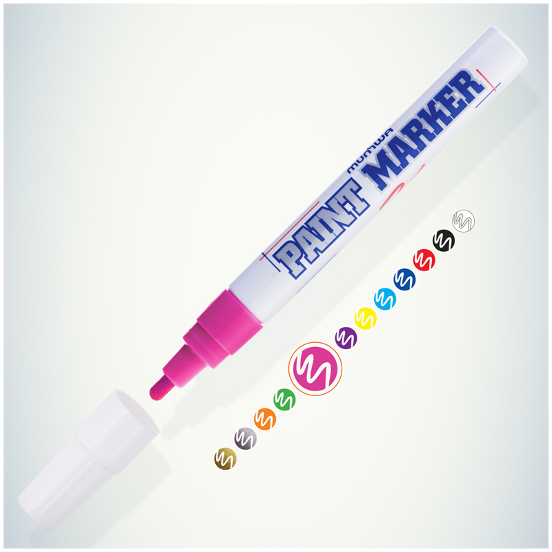 Paint Marker подходит для реставрации дефектов на бытовой технике, обуви, кузове автомобиля, а также надписей на каменных плитах. Маркер-краска MunHwa имеет широкое применения в дизайне, декорировании и оформлении.