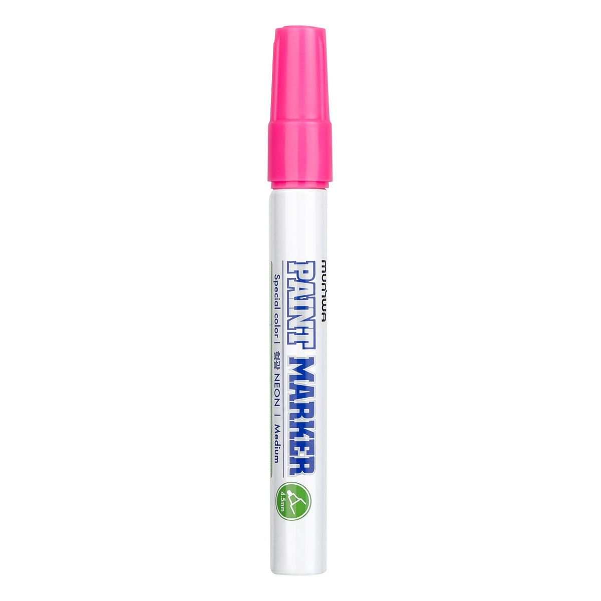 Маркер-краска (лаковый маркер) MunHwa – профессиональный лаковый маркер на нитрооснове. Маркер-краска MunHwa пишет на всех типах поверхностей: металл, дерево, резина, бетон, стекло, кожа.Цвет чернил – розовый неон, диаметр пишущего узла – 4,5 мм.
