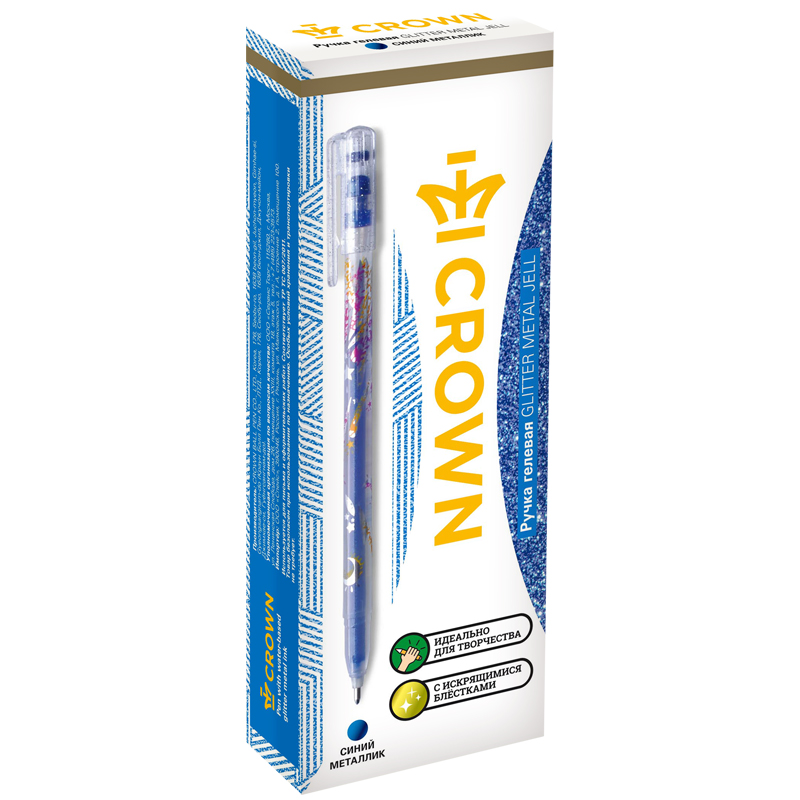 Ручка гелевая Crown "Glitter Metal Jell" синяя с блестками, 1,0мм [MTJ-500GLS(D)]
