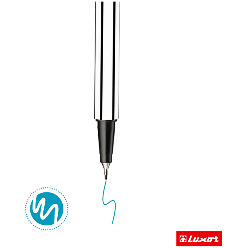Luxor Fine Writer пишут очень тонкой равномерной линией, оставляя четкий и достаточно контрастный след. Наконечник изготавливается из твёрдого пластика, благодаря чему обеспечивается одинаковая толщина линий при разных наклонах ручки, линия остается тонкой и ровной при длительном письме.