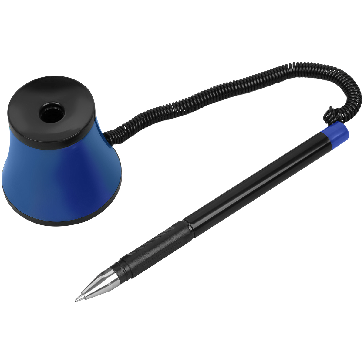 Ручка шариковая настольная OfficeSpace синяя, 0,7мм, черный корпус, синяя подставка, европодвес