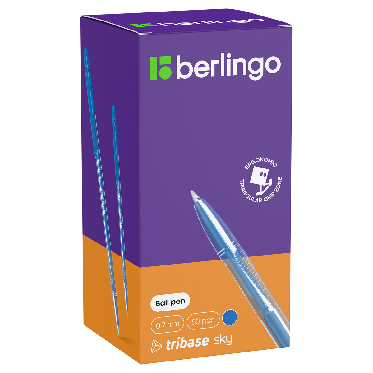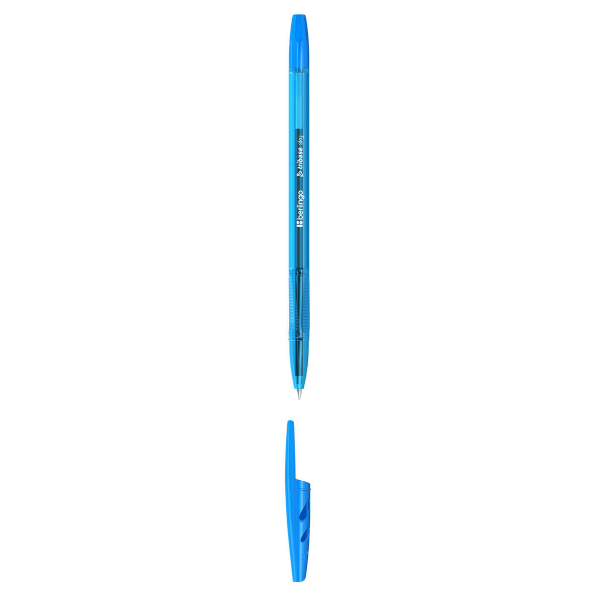 Шариковая ручка Berlingo Tribase Sky со светло-синими чернилами и вентилируемым колпачком, который обеспечивает безопасность при использовании детьми. Эта ручка - стильный аксессуар для работы или учёбы. Пластиковый клип позволит разместить ручку на ежедневниках или блокнотах. Эргономичная трёхгранная зона захвата с рифлением препятствует скольжению пальцев. Качественные чернила обеспечивают чёткое и ровное письмо. Диаметр пишущего узла составляет 0,7 мм, благодаря чему ручка прекрасно подходит для любого стиля письма. Толщина линии письма составляет 0,5 мм, а длина линии письма составляет 1200 метров.• Цвет чернил: светло-синий;