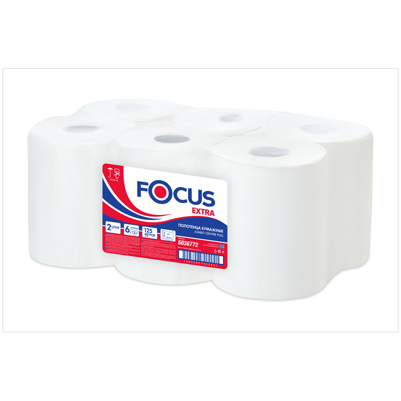 Полотенца бумажные в рулонах Focus Jumbo, 2-слойные, 125м/рул., ЦВ, белые [5036772]