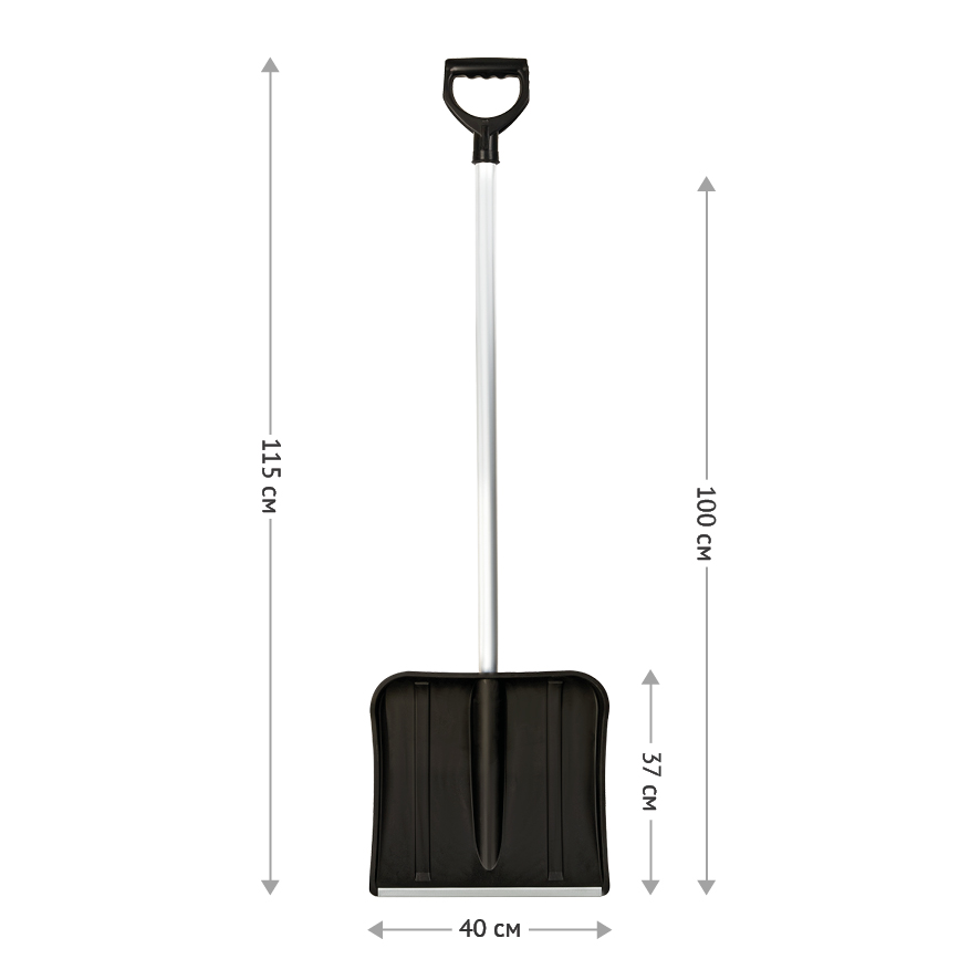 Лопата снеговая Vega, пластиковая, ковш 40*37см, с изогнутым алюм. черенком, с ручкой и планкой [329768]