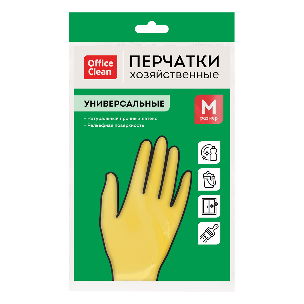 Перчатки резиновые хозяйственные OfficeClean Универсальные, разм. М, желтые, пакет с европодвесом [248569/Н]