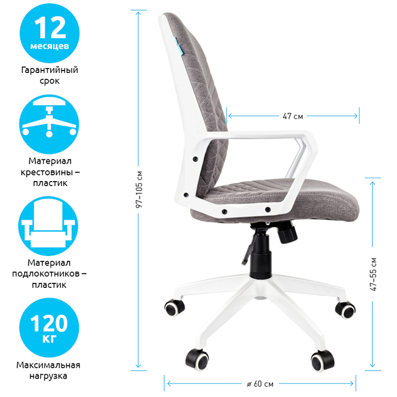 Компьютерное офисное кресло оператора Helmi HL-М05 Ambition – модная и амбициозная модель в незаурядном форм-факторе и с элегантной контрастной отстрочкой. Топ-уровень кресел оператора. Кресло доступно в двух исполнениях: на черном и белом каркасе.Максимальная нагрузка – 120 кг. Газпатрон 3 класса по стандарту BIFMA X5.1. Каркас – немонолитный, материал набивки – вспененный полиуретан, крестовина – белый пластик, материал обивки – ткань серого цвета. Механизм качания с возможностью фиксации кресла в рабочем положении. Гарантийный срок – 12 месяцев.