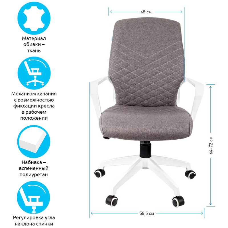 • Механизм качания: с возможностью фиксации кресла в рабочем положении.