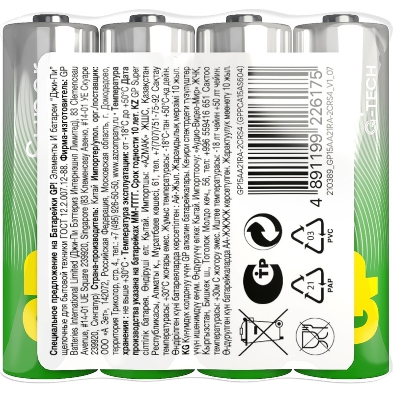 Батарейка ААА мизинчиковая GP Super (4 штуки в упаковке) [GP 24ARS-2SB4]
