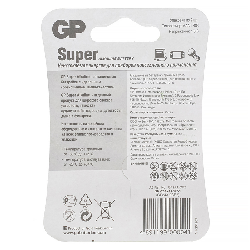 Батарейка ААА мизинчиковая GP Super (2 штуки в упаковке) [GP 24A-2CR2]