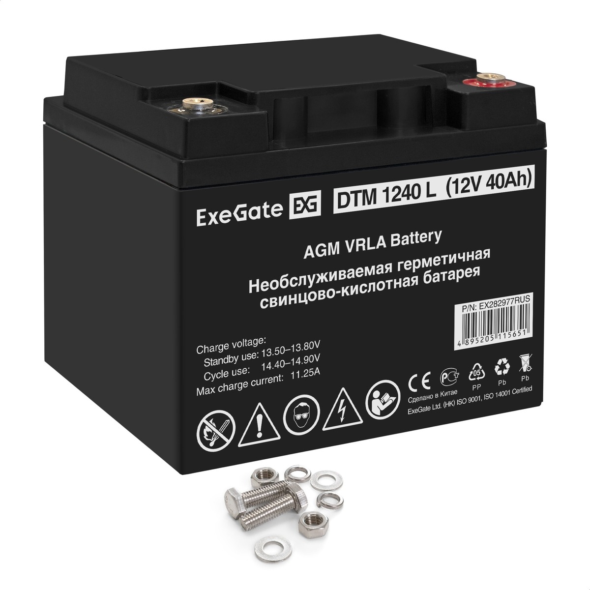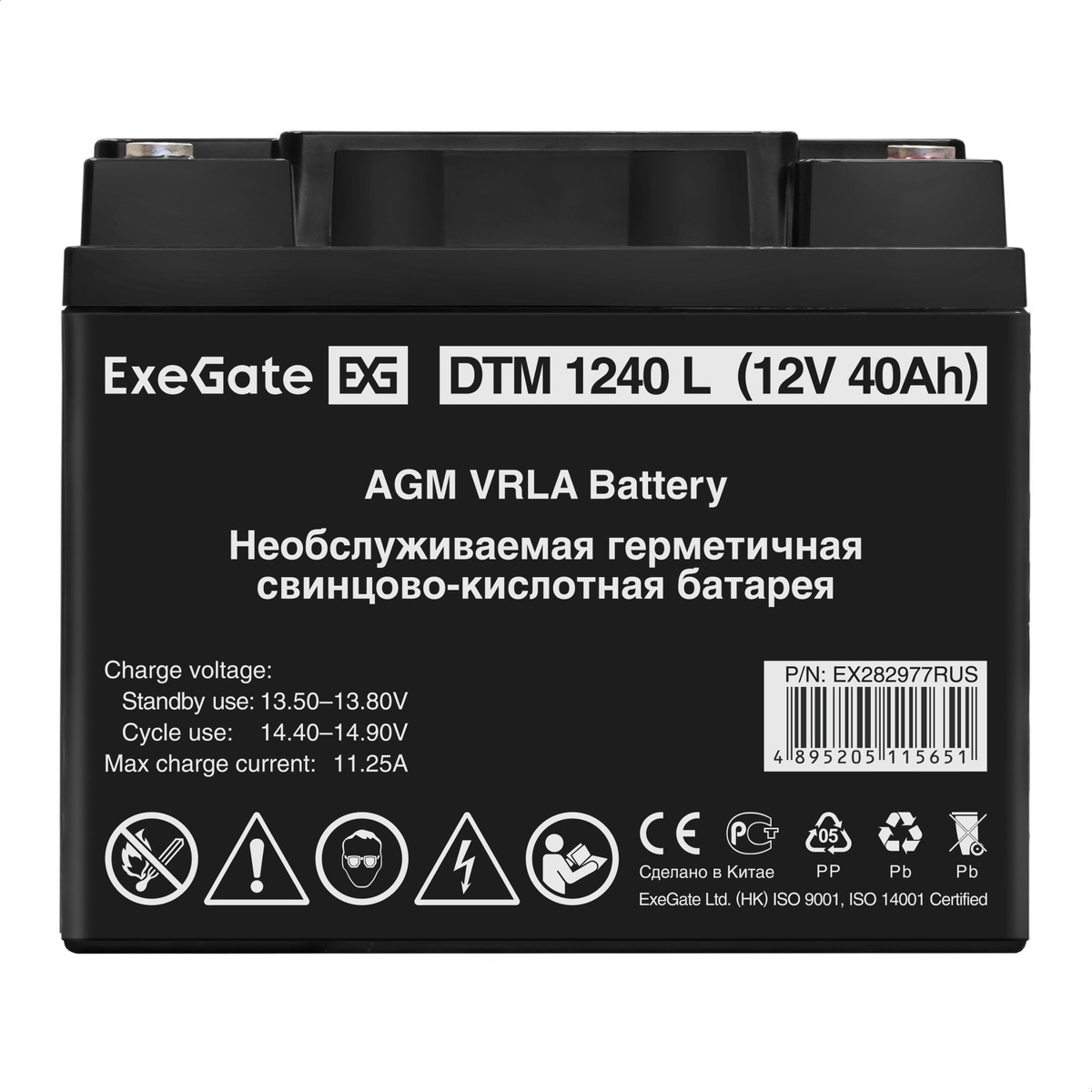 Свинцово-кислотные необслуживаемые аккумуляторы ExeGate серии DTM изготовлены по технологии AGM. Обладают низким внутренним сопротивлением и саморазрядом. Оптимизированы для работы в режиме постоянного подзаряда (буферный режим) или в режиме разряд-заряд (циклический режим).Корпус выполнен из пластика, не поддерживающего горение. Конструкция АКБ исключает утечку электролита. Система внутренней рекомбинации газа, не требует долива воды. Нет ограничений на перевозку любым видом транспорта. Эксплуатация АКБ допустима в любом положении, кроме перевернутого верх дном.