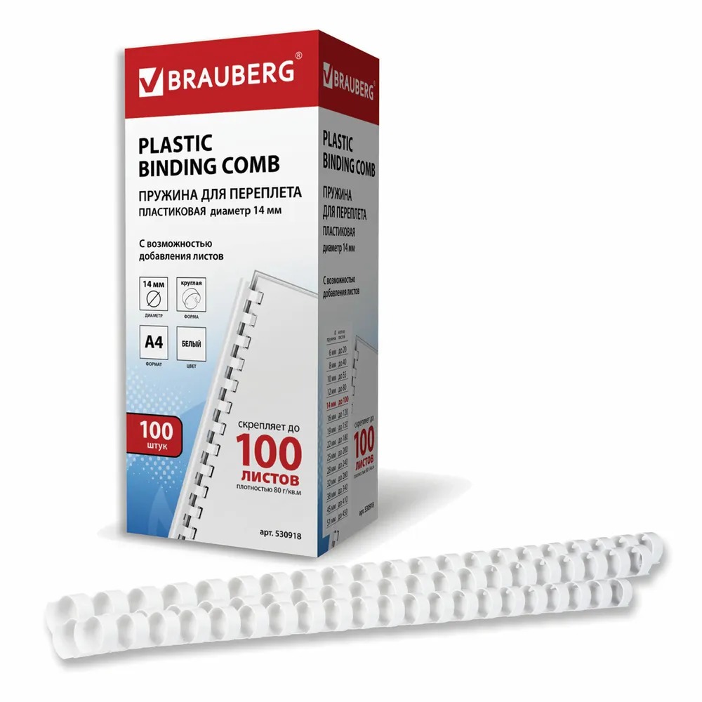 Пружины для переплета 14 мм BRAUBERG, белые [530918]