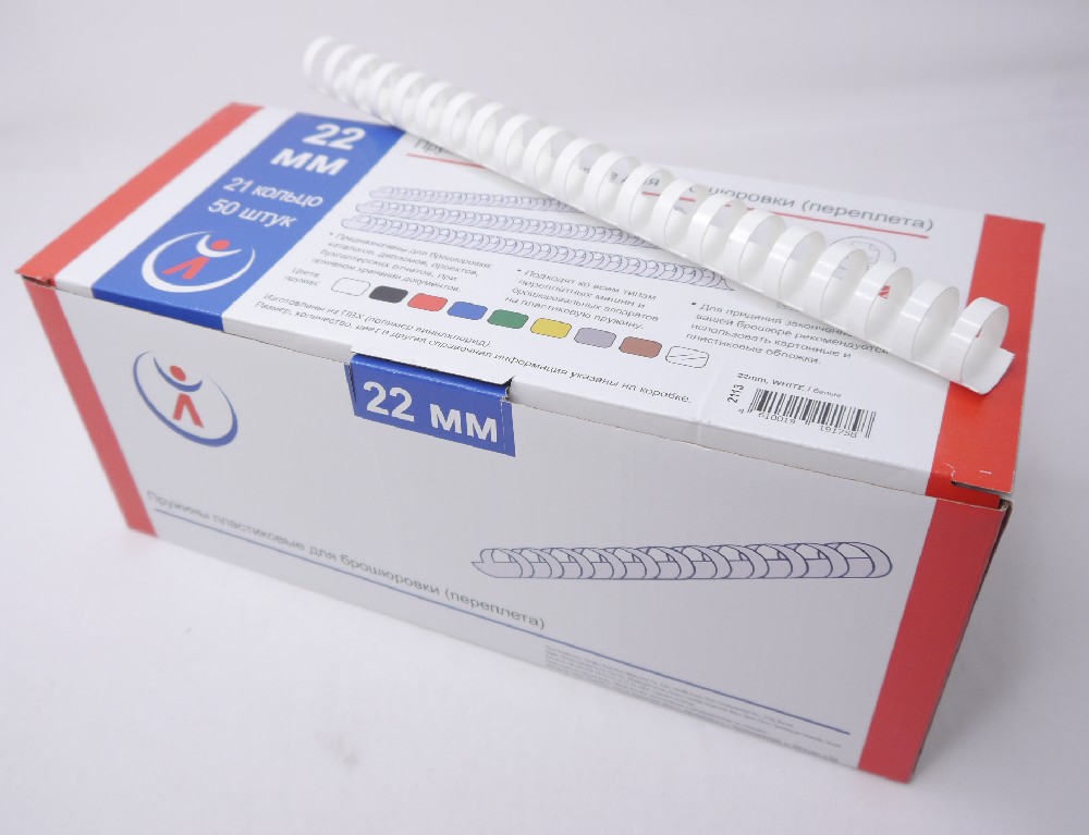 Пружины для переплета 22 мм РеалИСТ (180-210 листов), белый, 50шт [2113]