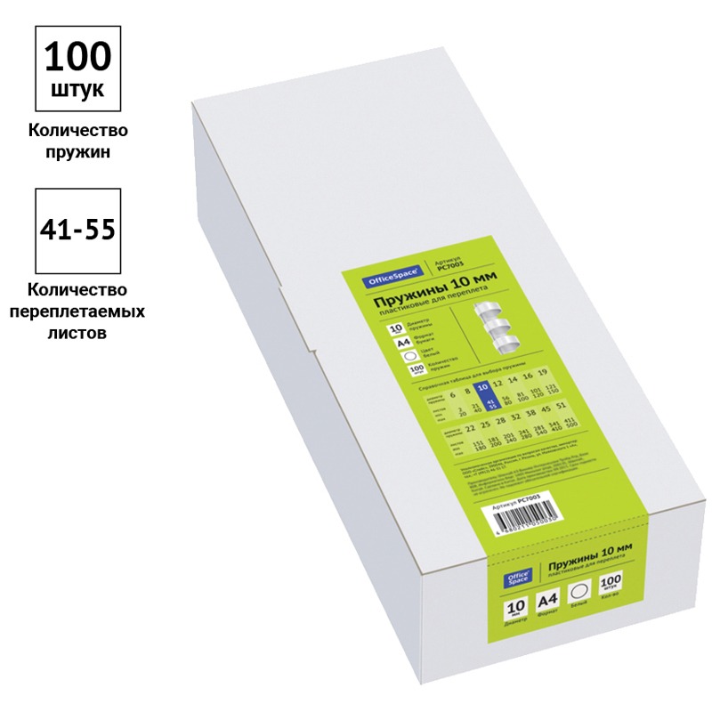 Пружины для переплета 10 мм OfficeSpace, белый, 100шт. [PC7003]