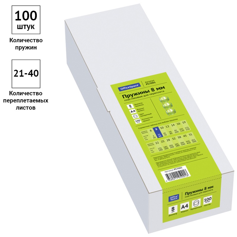 Пружины для переплета 8 мм OfficeSpace, прозрачн. бесцветный, 100шт [PC7001]