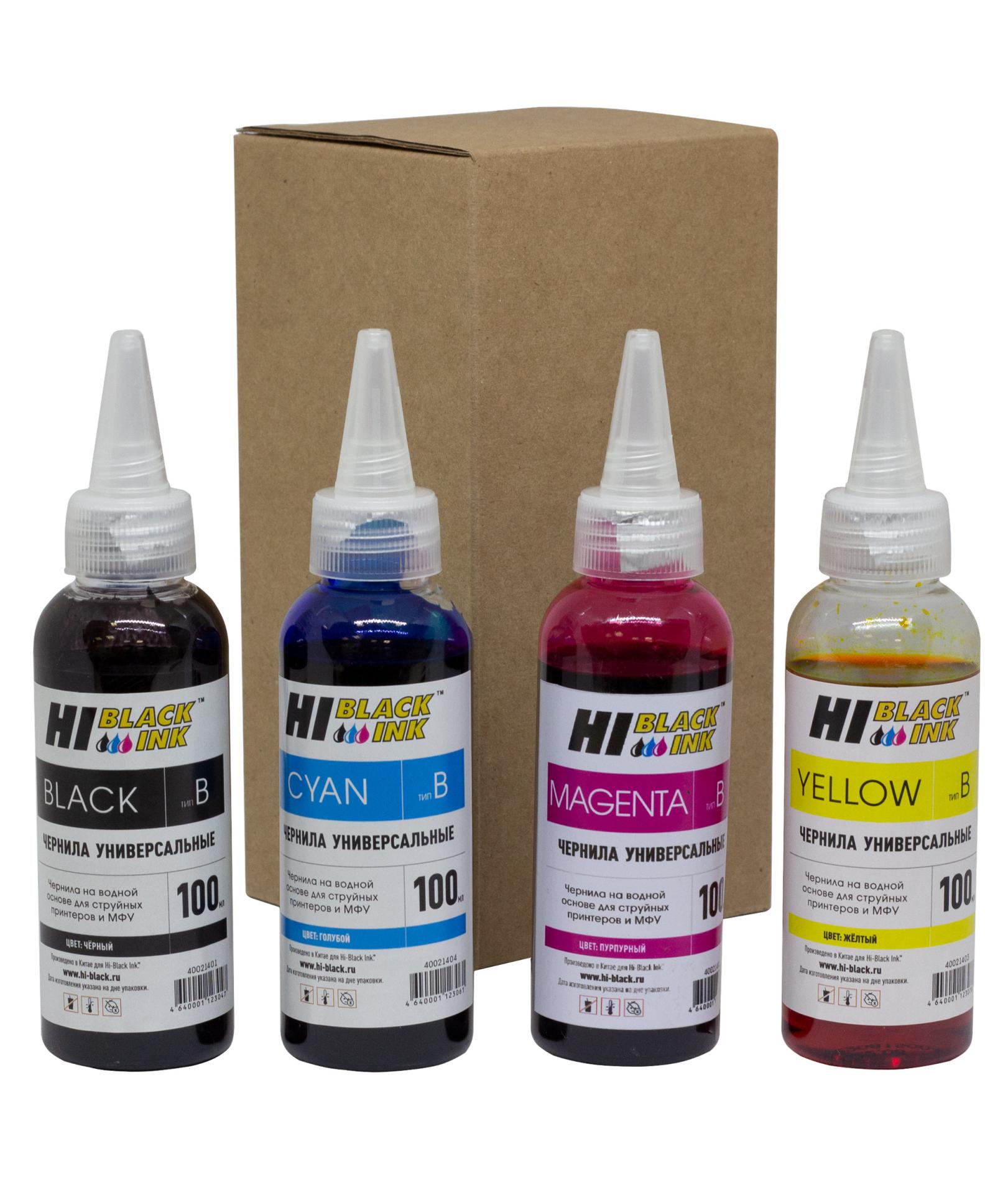 Чернила Brother (тип B), на водной основе, набор 4 цвета (4 * 100мл) Hi-Black