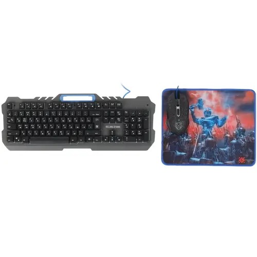 Клавиатура+мышь+ковер Defender Killing Storm MKP-013L RU представляют собой игровой комплект, который позволит достичь побед в любой игре. Мышь поддерживает светодиодный датчик с максимальным разрешением 3200 dpi: для изменения этого показателя в конструкции корпуса предусмотрен специальная кнопка. Это позволяет настроить мышь под определенные условия игры. Особенность мыши в том, что уровень скорости, который будет выбран, отобразится различной интенсивностью подсветки колесика прокрутки. На мышке вы сможете настраивать макросы и команды, чтобы достичь желаемого результата в игре.На кнопках мыши Defender Killing Storm MKP-013L RU можно устанавливать различные функции, присущие клавишам клавиатуры. Коврик для мыши имеет каучуковую нескользящую основу, благодаря чему он фиксируется надежно на любой поверхности. Полноразмерная клавиатура содержит 104 клавиши с мембранным механизмом. Среди дополнительных клавиш присутствуют кнопки с функциями мультимедиа, которые позволяют быстро переключиться на определенные функции одним нажатием, не выходя из игры.