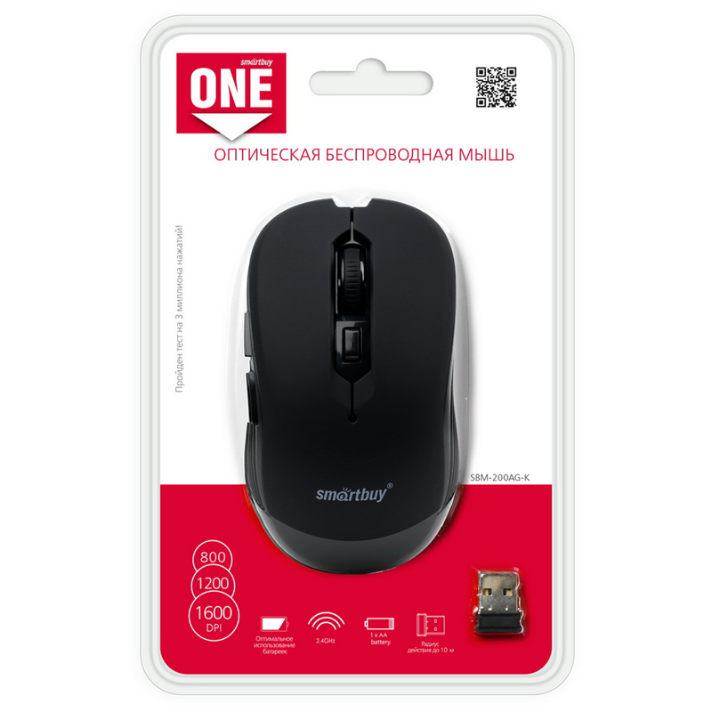 Мышь беспроводная Smartbuy ONE SBM-200AG-K черный [SBM-200AG-K]