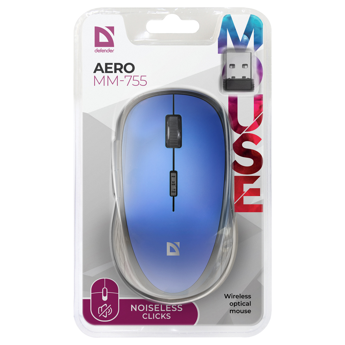 Мышь беспроводная Defender Aero MM-755 черный, синий [52755]
