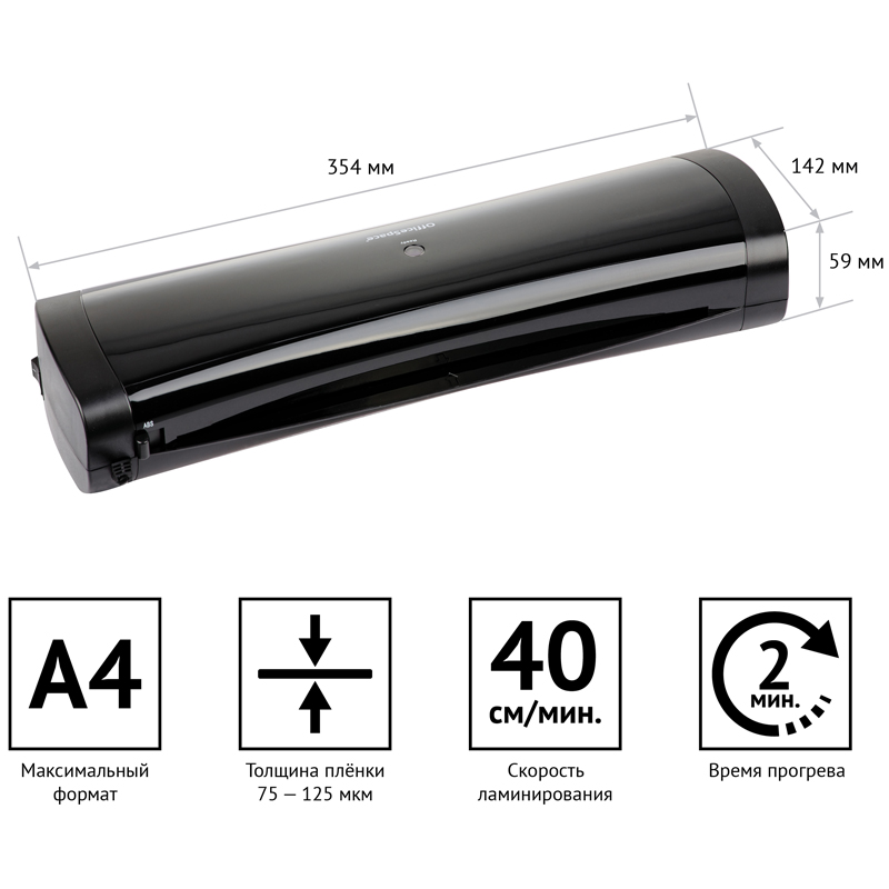 Ламинатор OfficeSpace LM500, А4, 75-125мкм, 2 вала, скорость 40см/мин, РТС [LM_32846]