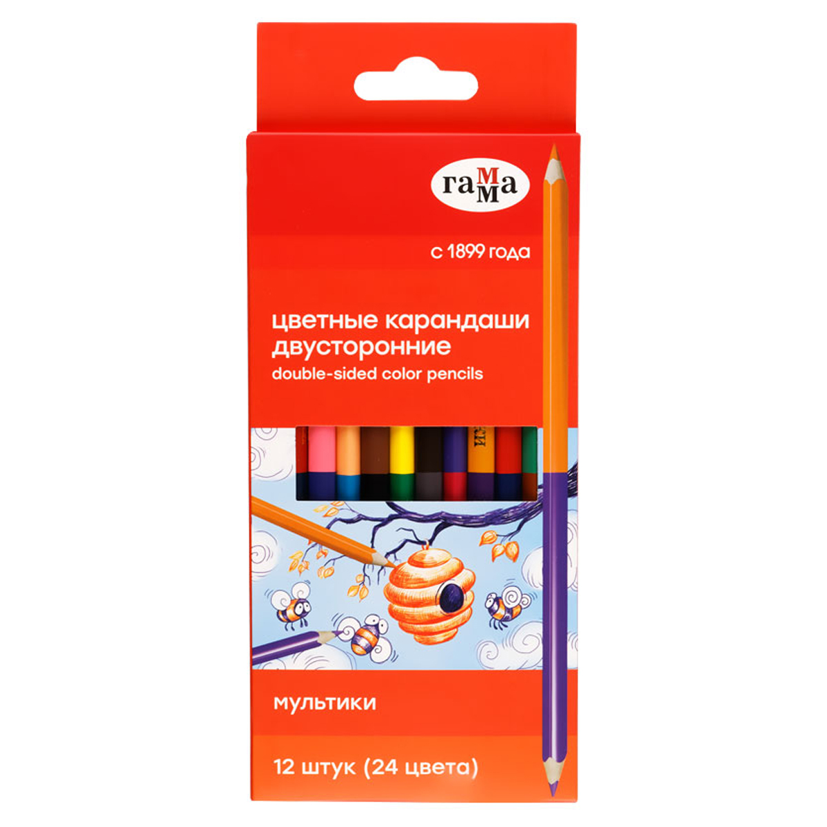 Карандаши цветные двусторонние Гамма "Мультики", 12шт., 24цв., заточен., картон, европодвес [80220223]