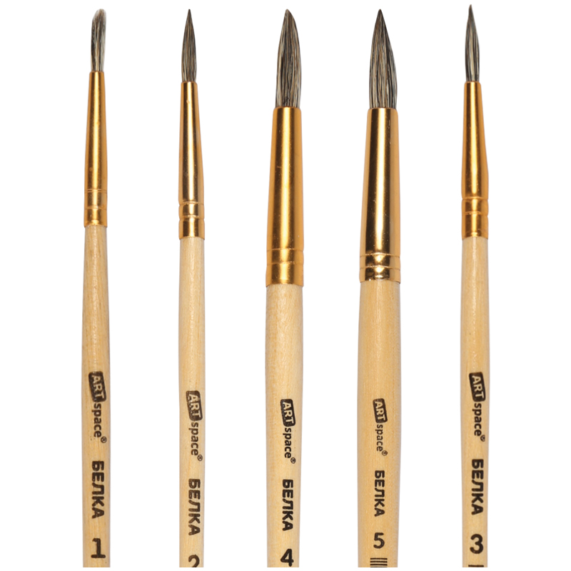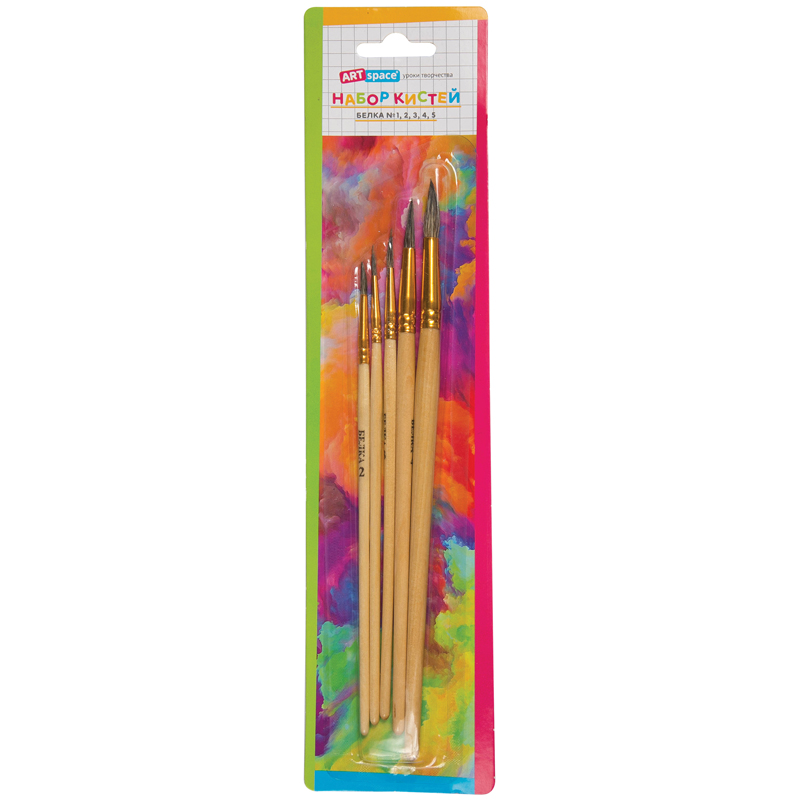 Набор кистей ArtSpace 5шт., белка, круглые, № 1, 2, 3, 4, 5, блистер [SB1-5_2388]