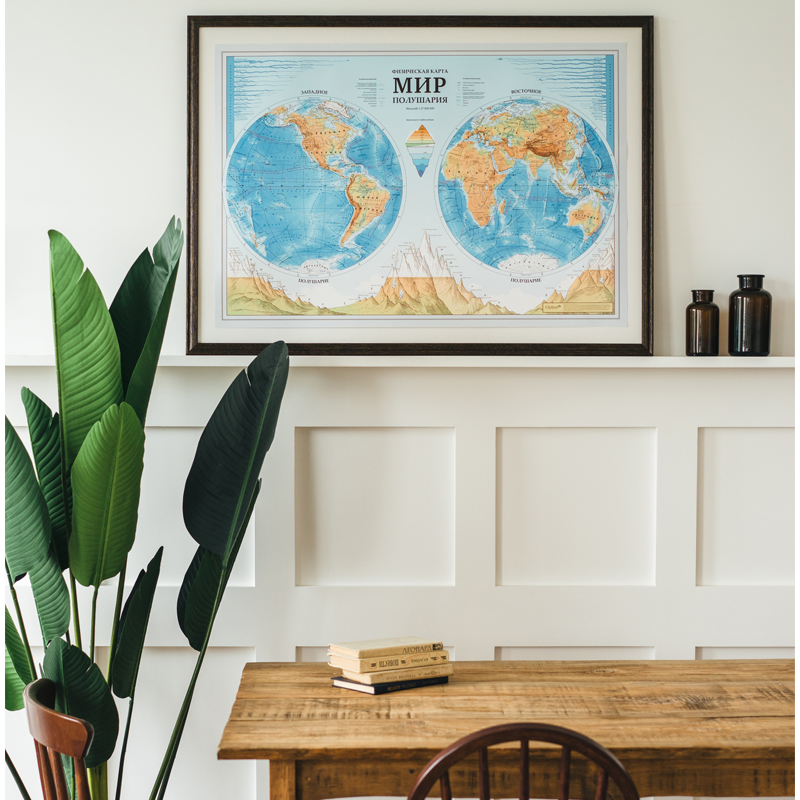 Карта "Мир. Полушария" физическая Globen, 1:37млн., 1010*690мм, с ламинацией