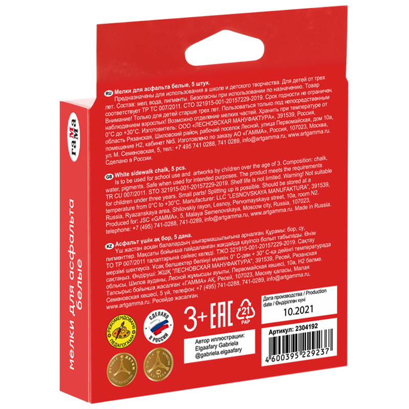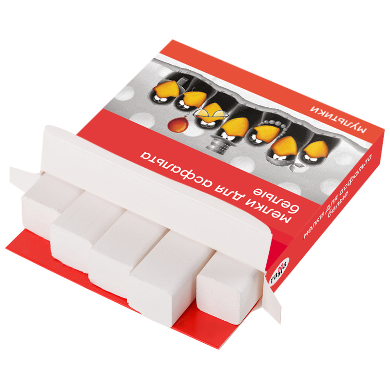 Набор из 5 квадратных белых мелков ГАММА серии «Мультики» подходит для рисования на асфальте и любой шероховатой поверхности. В упаковке 5 штук.Удобная квадратная форма и мягкое письмо. Мелки средней твёрдости имеют натуральный состав на основе мела, гипса, воды. Не имеют выраженного запаха. Следы мелков легко очищаются с рук. Для детей старше 3-х лет. Воспитатели и педагоги используют мелки для рисования и подвижных игр на улице. Набор упакован в картонную коробку.