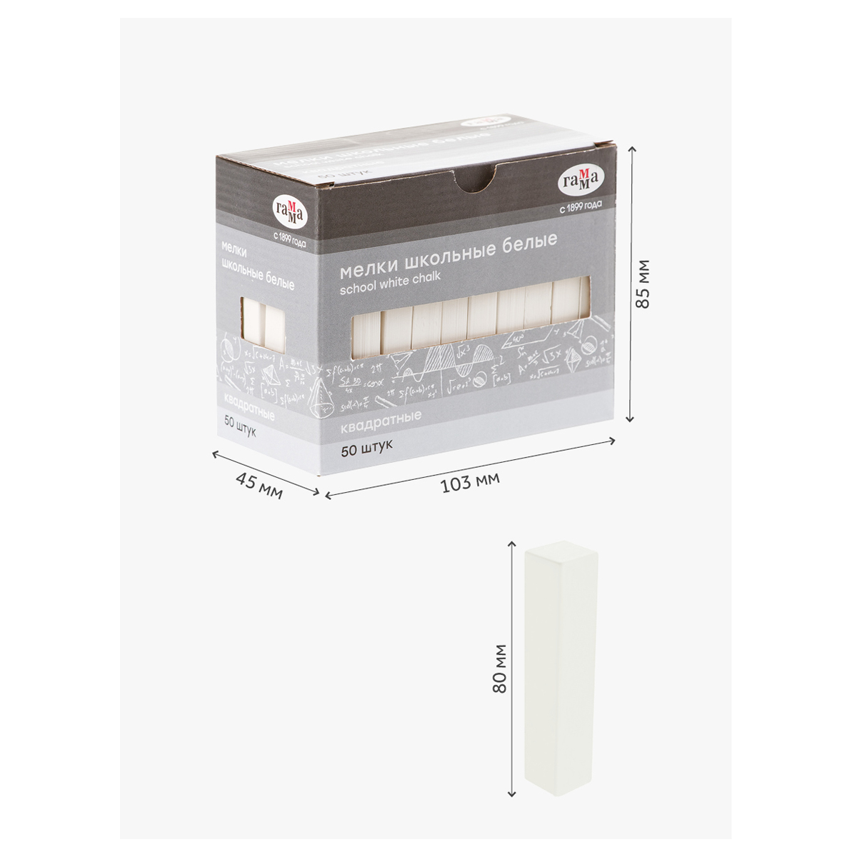 Мелки школьные Гамма, белые, 50шт., мягкие, квадратные [2308196]