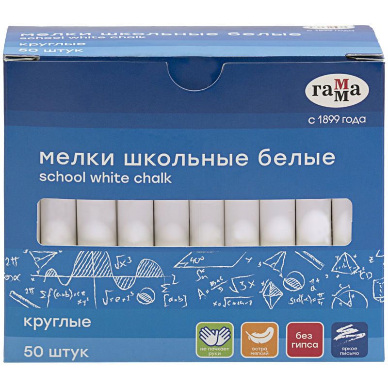 Мелки школьные Гамма, белые, 50шт., мягкие, круглые [71020201]