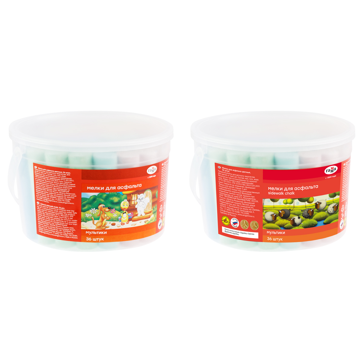 Мелки для асфальта Гамма "Мультики", цветные, 36шт., 9цв., круглые, пластиковое ведро